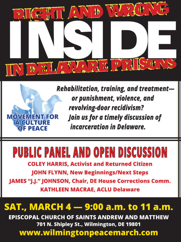 Rehabilitation, training, and treatment- or punishment, violence, and revolving-door recidivism? Join us for a timely discussion of incarceration in Delaware.