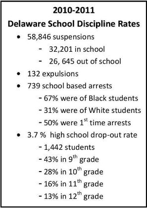 The takeaway from the event was that increasing knowledge of how to handle school discipline issues in Delaware is a must. The overwhelming majority of attendee’s were not surprised by Delaware’s disturbingly high school discipline statistics, and many had their own stories of negative school discipline experiences to share.